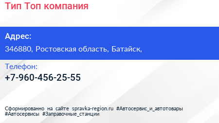 Тип-Топ, компания по адресу 346880, Ростовская область, Батайск, в дальнейшем Организация, размещена в следующих категориях: