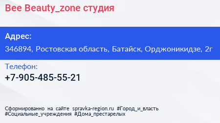 Bee.Beauty_zone, студия по адресу 346894, Ростовская область, Батайск, Орджоникидзе, 2г в дальнейшем Организация, размещена в следующих категориях: