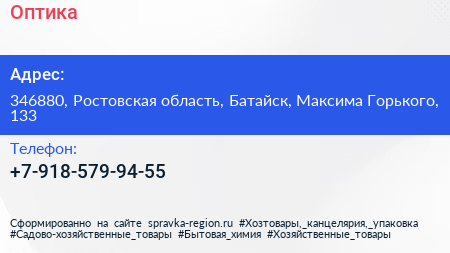 Оптика по адресу 346880, Ростовская область, Батайск, Максима Горького, 133 в дальнейшем Организация, размещена в следующих категориях: