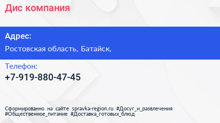 Дис, компания по адресу Ростовская область, Батайск, в дальнейшем Организация, размещена в следующих категориях: