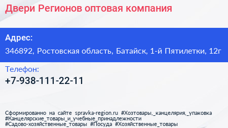 Двери Регионов, оптовая компания по адресу 346892, Ростовская область, Батайск, 1-й Пятилетки, 12г в дальнейшем Организация, размещена в следующих категориях: