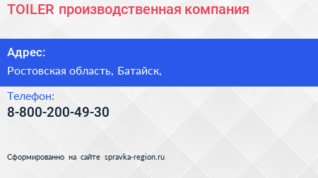 TOILER, производственная компания по адресу Ростовская область, Батайск, в дальнейшем Организация, размещена в следующих категориях: