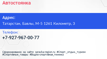 Адрес: Татарстан, Бавлы, М-5 1265 Километр, 3а