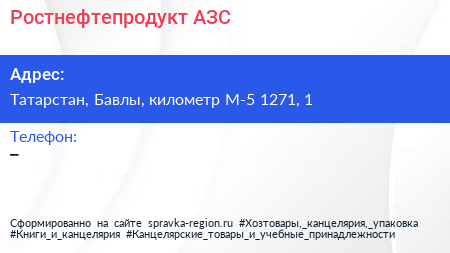 Ростнефтепродукт, АЗС по адресу Татарстан, Бавлы, километр М-5 1271, 1 в дальнейшем Организация, размещена в следующих категориях: