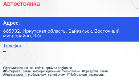 Автостоянка по адресу 665932, Иркутская область, Байкальск, Восточный микрорайон, 37а в дальнейшем Организация, размещена в следующих категориях: