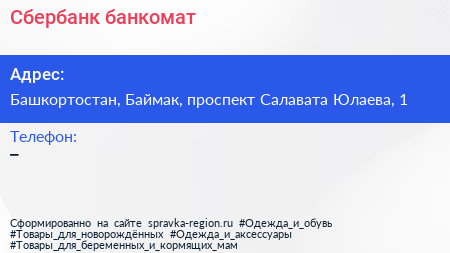 Сбербанк, банкомат по адресу Башкортостан, Баймак, проспект Салавата Юлаева, 1 в дальнейшем Организация, размещена в следующих категориях:
