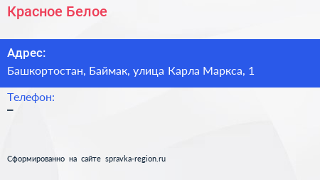 Красное & Белое по адресу Башкортостан, Баймак, улица Карла Маркса, 1 в дальнейшем Организация, размещена в следующих категориях: