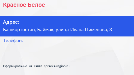 Красное & Белое по адресу Башкортостан, Баймак, улица Ивана Пименова, 3 в дальнейшем Организация, размещена в следующих категориях: