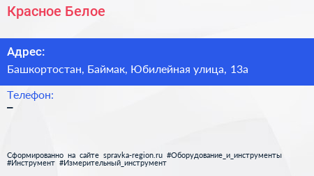 Красное & Белое по адресу Башкортостан, Баймак, Юбилейная улица, 13а в дальнейшем Организация, размещена в следующих категориях: