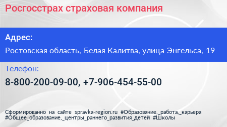 Росгосстрах, страховая компания по адресу Ростовская область, Белая Калитва, улица Энгельса, 19 в дальнейшем Организация, размещена в следующих категориях: