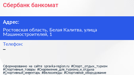 Сбербанк, банкомат по адресу Ростовская область, Белая Калитва, улица Машиностроителей, 1 в дальнейшем Организация, размещена в следующих категориях: