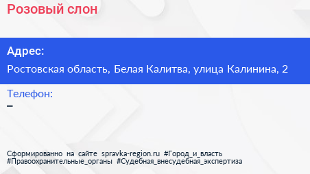 Розовый слон по адресу Ростовская область, Белая Калитва, улица Калинина, 2 в дальнейшем Организация, размещена в следующих категориях: