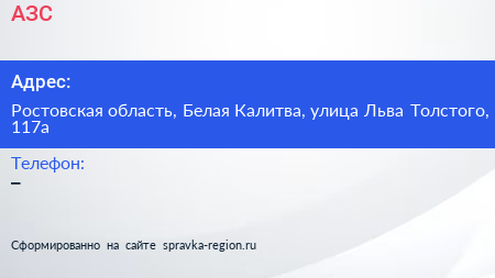 АЗС по адресу Ростовская область, Белая Калитва, улица Льва Толстого, 117а в дальнейшем Организация, размещена в следующих категориях: