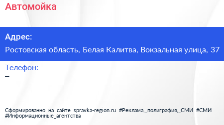 Автомойка по адресу Ростовская область, Белая Калитва, Вокзальная улица, 37 в дальнейшем Организация, размещена в следующих категориях: