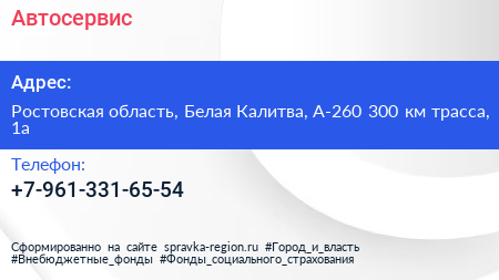 Автосервис по адресу Ростовская область, Белая Калитва, А-260 300 км трасса, 1а в дальнейшем Организация, размещена в следующих категориях: