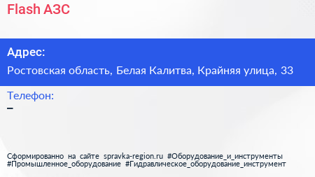 Flash, АЗС по адресу Ростовская область, Белая Калитва, Крайняя улица, 33 в дальнейшем Организация, размещена в следующих категориях: