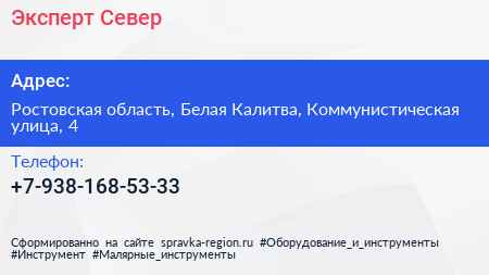 Эксперт-Север по адресу Ростовская область, Белая Калитва, Коммунистическая улица, 4 в дальнейшем Организация, размещена в следующих категориях: