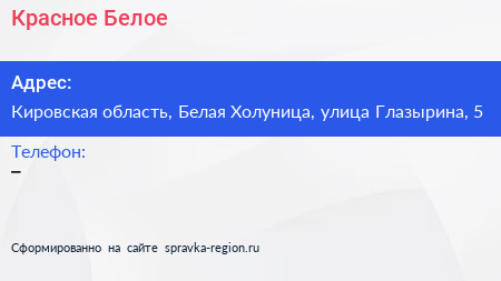 Красное & Белое по адресу Кировская область, Белая Холуница, улица Глазырина, 5 в дальнейшем Организация, размещена в следующих категориях: