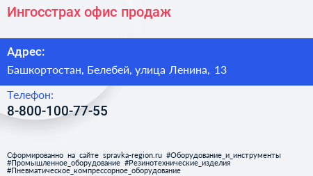 Ингосстрах, офис продаж по адресу Башкортостан, Белебей, улица Ленина, 13 в дальнейшем Организация, размещена в следующих категориях: