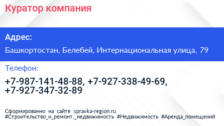 Куратор, компания по адресу Башкортостан, Белебей, Интернациональная улица, 79 в дальнейшем Организация, размещена в следующих категориях:
