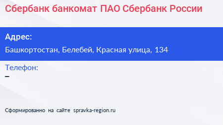 Сбербанк, банкомат, ПАО Сбербанк России по адресу Башкортостан, Белебей, Красная улица, 134 в дальнейшем Организация, размещена в следующих категориях: