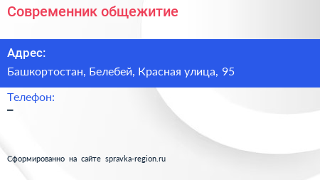 Современник, общежитие по адресу Башкортостан, Белебей, Красная улица, 95 в дальнейшем Организация, размещена в следующих категориях: