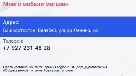 Много мебели, магазин по адресу Башкортостан, Белебей, улица Ленина, 66 в дальнейшем Организация, размещена в следующих категориях: