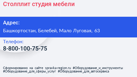 Столплит, студия мебели по адресу Башкортостан, Белебей, Мало Луговая, 63 в дальнейшем Организация, размещена в следующих категориях:
