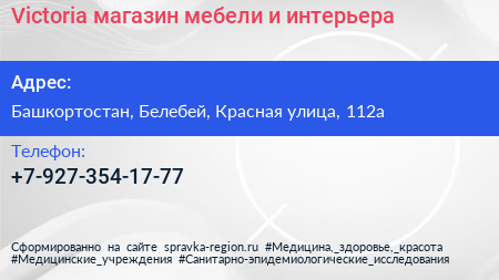 Victoria, магазин мебели и интерьера по адресу Башкортостан, Белебей, Красная улица, 112а в дальнейшем Организация, размещена в следующих категориях:
