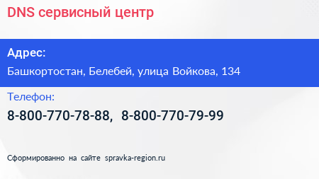 DNS, сервисный центр по адресу Башкортостан, Белебей, улица Войкова, 134 в дальнейшем Организация, размещена в следующих категориях: