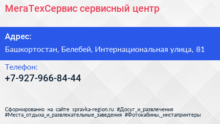 МегаТехСервис, сервисный центр по адресу Башкортостан, Белебей, Интернациональная улица, 81 в дальнейшем Организация, размещена в следующих категориях: