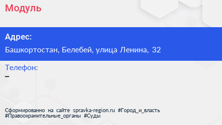 Модуль+ по адресу Башкортостан, Белебей, улица Ленина, 32 в дальнейшем Организация, размещена в следующих категориях: