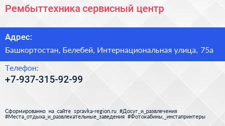 Рембыттехника, сервисный центр по адресу Башкортостан, Белебей, Интернациональная улица, 75а в дальнейшем Организация, размещена в следующих категориях: