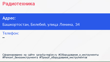 Радиотехника по адресу Башкортостан, Белебей, улица Ленина, 34 в дальнейшем Организация, размещена в следующих категориях: