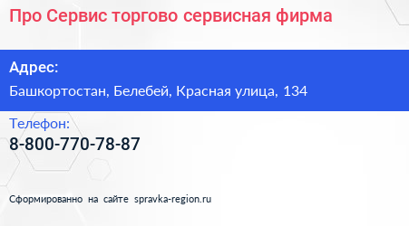 Про-Сервис, торгово-сервисная фирма по адресу Башкортостан, Белебей, Красная улица, 134 в дальнейшем Организация, размещена в следующих категориях: