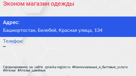 Эконом, магазин одежды по адресу Башкортостан, Белебей, Красная улица, 134 в дальнейшем Организация, размещена в следующих категориях: