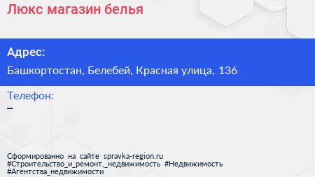Люкс, магазин белья по адресу Башкортостан, Белебей, Красная улица, 136 в дальнейшем Организация, размещена в следующих категориях: