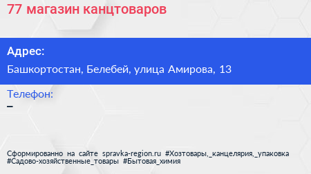 77, магазин канцтоваров по адресу Башкортостан, Белебей, улица Амирова, 13 в дальнейшем Организация, размещена в следующих категориях: