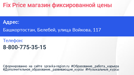Fix Price, магазин фиксированной цены по адресу Башкортостан, Белебей, улица Войкова, 117 в дальнейшем Организация, размещена в следующих категориях: