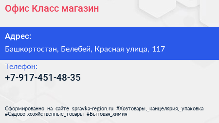 Офис-Класс, магазин по адресу Башкортостан, Белебей, Красная улица, 117 в дальнейшем Организация, размещена в следующих категориях: