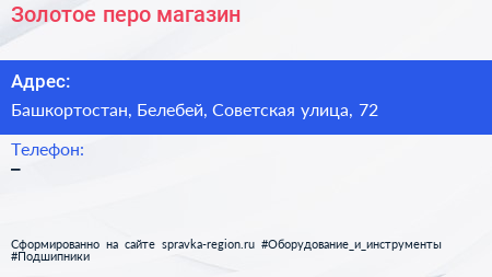 Золотое перо, магазин по адресу Башкортостан, Белебей, Советская улица, 72 в дальнейшем Организация, размещена в следующих категориях: