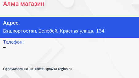Алма, магазин по адресу Башкортостан, Белебей, Красная улица, 134 в дальнейшем Организация, размещена в следующих категориях: