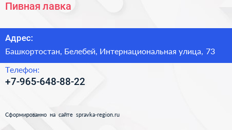 Пивная лавка по адресу Башкортостан, Белебей, Интернациональная улица, 73 в дальнейшем Организация, размещена в следующих категориях: