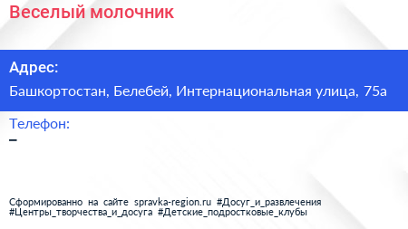 Веселый молочник по адресу Башкортостан, Белебей, Интернациональная улица, 75а в дальнейшем Организация, размещена в следующих категориях: