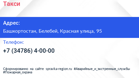 Такси по адресу Башкортостан, Белебей, Красная улица, 95 в дальнейшем Организация, размещена в следующих категориях: