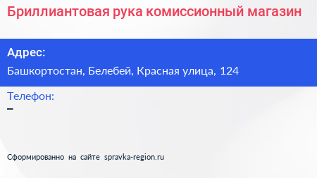 Бриллиантовая рука, комиссионный магазин по адресу Башкортостан, Белебей, Красная улица, 124 в дальнейшем Организация, размещена в следующих категориях: