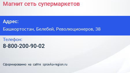 Магнит, сеть супермаркетов по адресу Башкортостан, Белебей, Революционеров, 38 в дальнейшем Организация, размещена в следующих категориях: