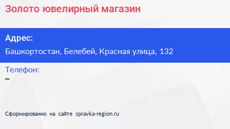 Золото, ювелирный магазин по адресу Башкортостан, Белебей, Красная улица, 132 в дальнейшем Организация, размещена в следующих категориях: