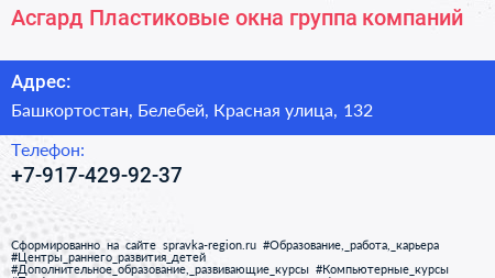 Асгард-Пластиковые окна, группа компаний по адресу Башкортостан, Белебей, Красная улица, 132 в дальнейшем Организация, размещена в следующих категориях:
