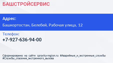 БАШСТРОЙСЕРВИС по адресу Башкортостан, Белебей, Рабочая улица, 12 в дальнейшем Организация, размещена в следующих категориях: